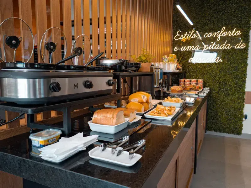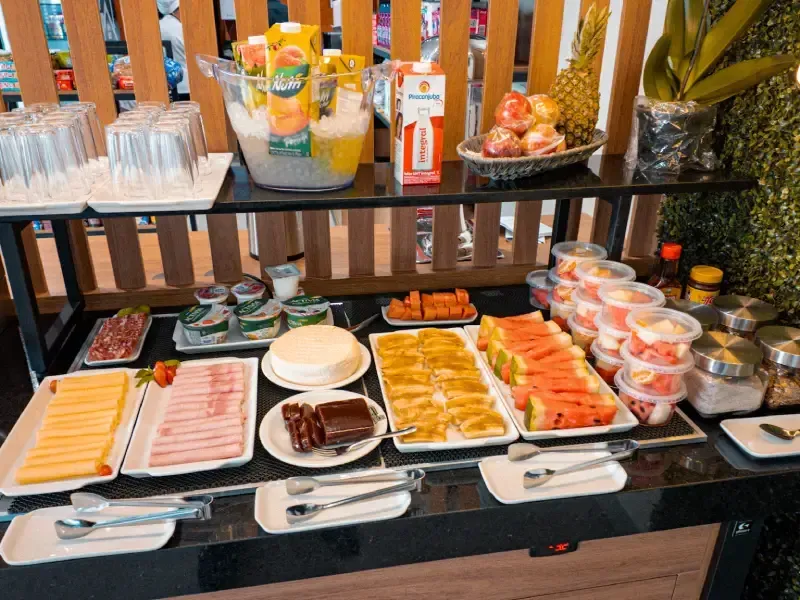 Comece o dia com energia! Oferecemos um ótimo café da manhã, preparado com carinho, variedade e qualidade, garantindo uma experiência saborosa logo nas primeiras horas.